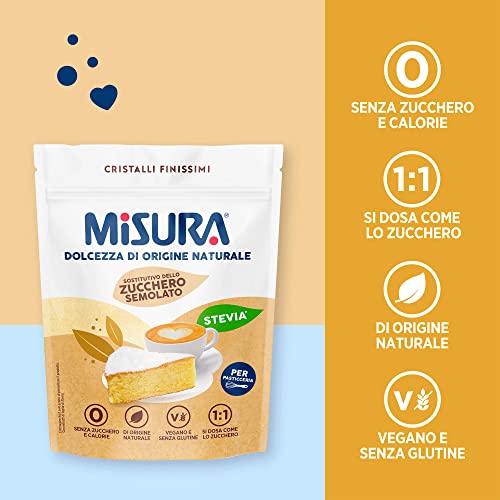 Misura Pasticceria Stevia Dolcificante in Cristalli Finissimi, Sostitutivo Dello Zucchero Semolato, Zero Calorie, Senza Glutine, Origine Naturale, Dolcificante Vegano Ideale per Dolci, 370g