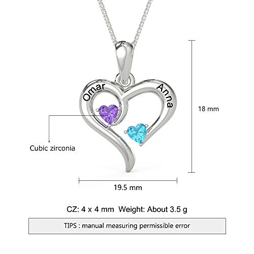Su misura Sterlina Argento Amore Cuore Collana per Donne Cusume Gioielleria- Pendente per Mamma Nonna BFF Nome Collana Catena personalizzata Regali - 2 simulato Birthstone 2 inciso nomi 2 pacco