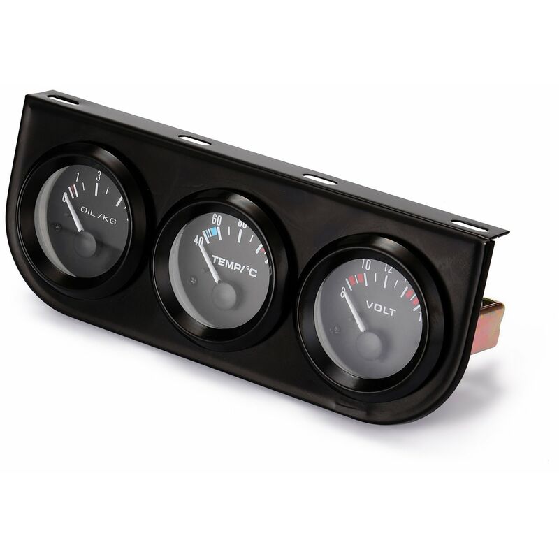 Indicatore per auto 3 in 1 per auto, incluso indicatore della temperatura dell'acqua, indicatore della temperatura dell'olio, indicatore dell'olio, indicatore del volt ciascuno di essi. Caratteristiche: Realizzato in materiale d'acciaio, pratico da usare. Acqua Intervallo di misurazione dell'indicatore di temperatura: 40-120 ℃ Intervallo di misurazione del manometro dell'olio: 0-7 kg. Intervallo di misurazione dell'indicatore di tensione: 8V-16V Adatto universale per: la maggior parte delle auto o dei motori />Numeri e puntatore mostrano chiaramente la temperatura. Illuminazione sul quadrante per una facile lettura al buio. Sensibilità fine e facilità d'uso. Specifiche: Materiale: metallo Colore: bianco e nero Dimensioni articolo: 190 * 75 * 65 mm / 7,5 * 3,0 * 2,6 pollici Peso articolo: 300 g / 10,7 once Formato confezione: 240 * 90 * 85 mm / 9,4 * 3,5 * 3,3 pollici Peso confezione: 481 g/1,1 libbre Lista di imballaggio: 1 * 3-in-1 Gauge