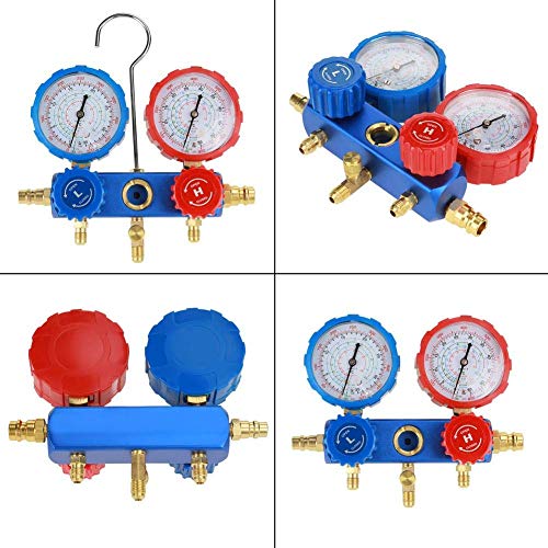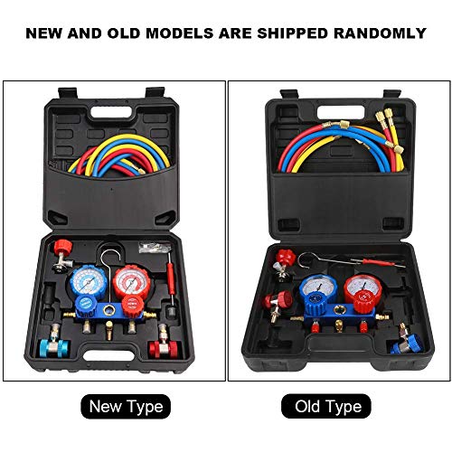 Set Misuratore Collettore Diagnostico a 3 vie con Custodia, Misuratore Collettore Refrigerante aria Condizionata Adatto per Refrigeranti R134A, con Tubi di Ricarica da 5 Piedi, 2 Adattatori