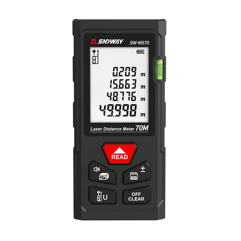 Misurazione accurata - - Grazie alla tecnologia laser avanzata, la precisione della misurazione raggiunge +/- 2 mm. 4 linee è di facile lettura e può essere utilizzata anche in ambienti bui 1 livella a bolla è installata per un preciso allineamento verticale e orizzontale del laser. Il punto di inizio della misurazione può essere configurato come parte anteriore o posteriore del dispositivo Calibrazione automatica I risultati della misurazione possono essere ottenuti tramite [Caratteristiche aggiuntive] - Con questo pratico telemetro laser, puoi regolare facilmente l'unità. visualizzazione tra metri/pollici/piedi. Fino a 20 record possono essere salvati e recuperati. Il dispositivo ha anche pulsanti più, meno, autocalibrazione e muto [IP54 e amp;