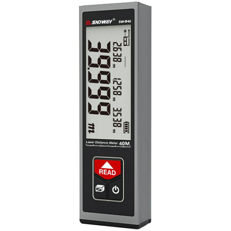 Settore edile. Specifiche: Marca: SNDWAY Materiale: alluminio lega Colore: nero Modello: SW-B40 / SW-B50 / SW-B60 (opzionale) Modello SW-B40 SW-B50 SW-B60 Potenza max. campo di misura 40 m 50 m 60 m Colore del laser Rosso Punto di riferimento 2 (posteriore, anteriore) Precisione ±(2mm+ d*10^-4) Misura continua si Misura area si Misura volume si Misura pitagorica Modalità completa Opzioni unità m/in/ft Temperatura di esercizio 0°C~40°C Temperatura di stoccaggio -20°C~60°C < br /> Umidità di stoccaggio 20%~80% RH Valore min/max sì Auto- Calibrazione sì Livello laser II Tipo di laser 630-670nm, Batteria Batteria al litio da 3,7 V 850 mAh Pulsanti/tasti suono sì Dimensione articolo: 100,3 * 33,4 * 18,3 mm / 3,94 * 1,31 * 0,72 pollici Peso articolo: 68 g / 2,39 once Peso confezione: 136 g / 4,79 once Dimensioni confezione: 16 * 9 * 3,5 cm / 6,29 * 3,54 * 1,37 pollici Lista di imballaggio: 1 * Misuratore di