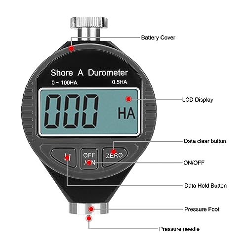 ★ [Funzionamento semplice]: questo durometro digitale per gomma è dotato di un interruttore di alimentazione, che può cambiare l'unità di misura in qualsiasi posizione e può facilmente ripristinare qualsiasi posizione