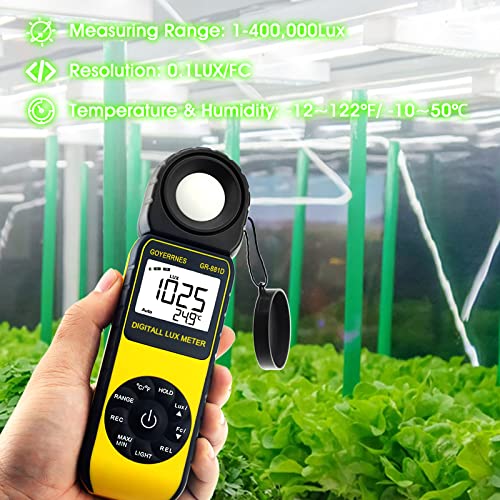Misuratore di luce Misuratore di illuminamento digitale 0~400.000 Lux Fotometro di illuminazione GR-881D Misuratore di Lux portatile con misurazione della luminosità dell'intensità della temperatura.
