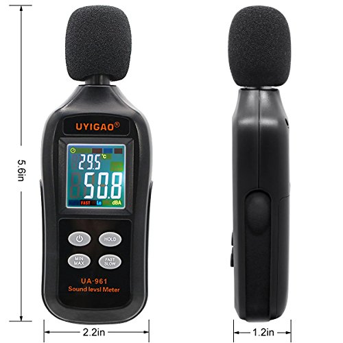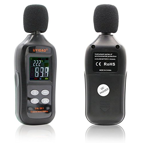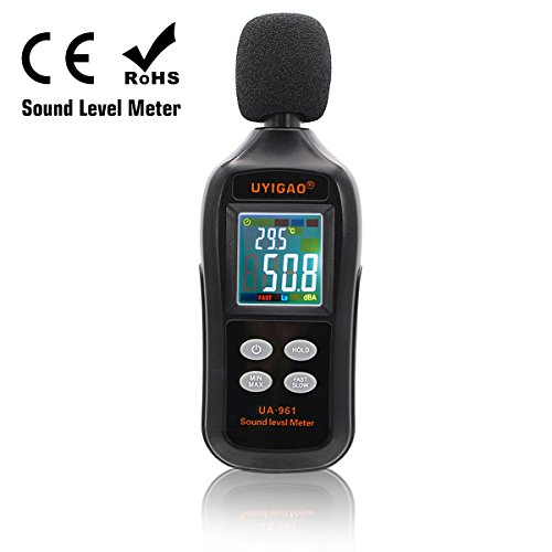 Misuratore di livello sonoro digitale, UYIGAO Mini Sound Measurement Testing Audio Noise Decibel, 35dBA ~ 135dBA Modalità Max/Min/Hold con display LCD automatico