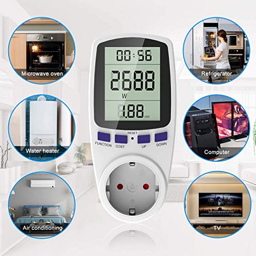 ATEC - Misuratore Multifunzione di Tensione/Corrente/Potenza/Consumo/Contatore del Costo Energetico con Display LCD -