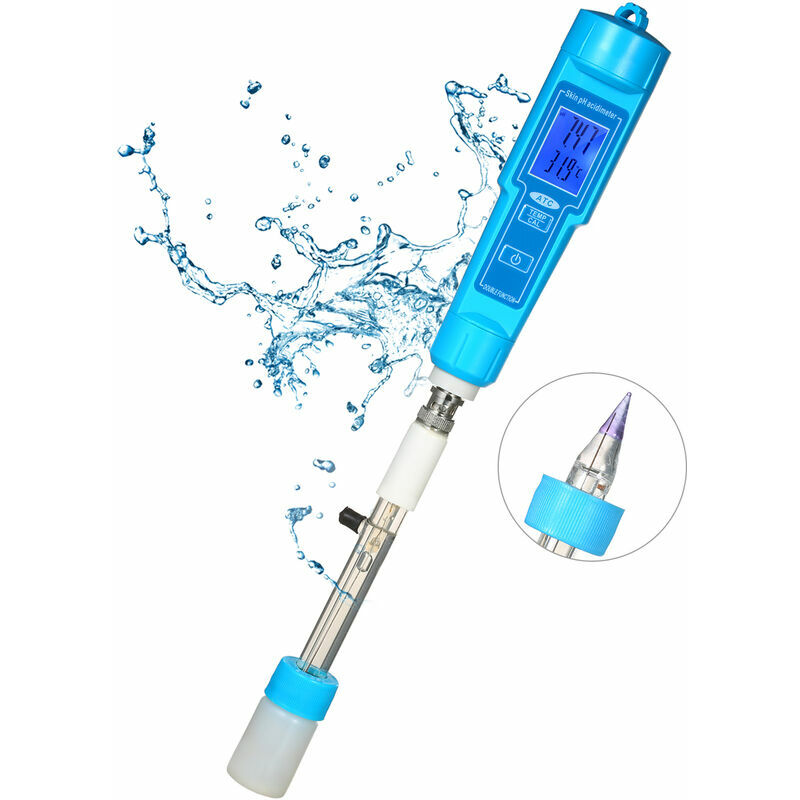 Il pHmetro è progettato per misurare rapidamente i valori di pH liquidi e visualizzare contemporaneamente la temperatura dell'oggetto in prova. Il misuratore di pH è caratterizzato da un funzionamento semplice, prestazioni stabili e misurazioni accurate ed è ampiamente utilizzato in acquacoltura, stagni per pesci, acquari, altre produzioni industriali e agricole e ricerca scientifica, dove è necessario testare il pH e la qualità dell'acqua. Caratteristiche: Doppia funzione: per misurare rapidamente il pH e la temperatura del liquido in prova. Misura del pH: campo di misura da 0,00 a 14,00 pH, risoluzione di 0,01 pH e precisione di ±0,1 pH. Misurazione della temperatura: campo di misura 0~50℃ (32~122℉), risoluzione 0,1℃ (0,2℉) e precisione di ±1,0℃, unità di temperatura ℃/℉ commutabile. Qualità affidabile: chip intelligente con sonda impermeabile ad alta sensibilità per misurazioni rapide e accurate e display LCD retroilluminato blu da 1,25 pollici con doppia visualizzazione di pH e