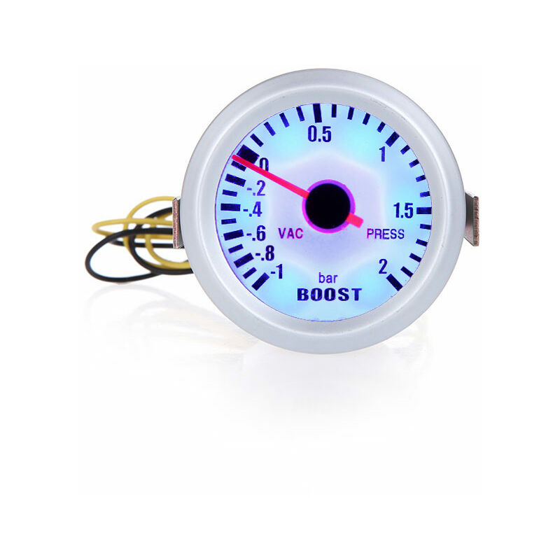 Caratteristiche: numeri e puntatore mostrano chiaramente la stampa / VAC. blu luce LED per una facile lettura al buio. rangeability è -1 ~ 2BAR. ad alta sensibilità e facilità d'uso. usato per misurare la pressione del turbo dell'automobile. specifiche: colore: argento unità: BAR gamma di misura: -1 ~ 2BAR alimentazione: 12V DC, Max. 0.3 a lunghezza di PVC flessibile: 172 cm/68 in Turbo boost gauge dimensioni: 5.7 * 6,4 cm / 2.2 * 2.5 in (diametro * altezza) Turbo boost gauge peso: 92 g/3,2 oz dimensioni del pacco: 17 * 12 * 7,8 cm / 6.7 * 4.7 * 3,1 in peso del pacchetto: 254 g/9 oz pacchetto compreso: 1 * Boost Gauge 1 * tubo in PVC 1 *