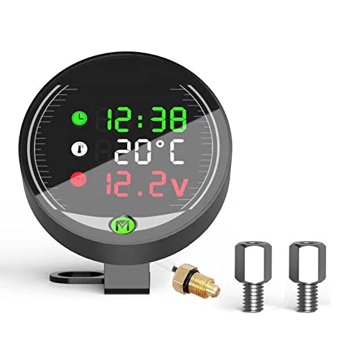 Misuratore Della Temperatura Dell'Acqua, Voltmetro per Moto 5 in 1/Tempo/Cronografo/Misuratore di Temperatura Dell'Acqua/Misuratore di Tensione Led Digitale di Carica Usb Adatto per Moto Dc 12v