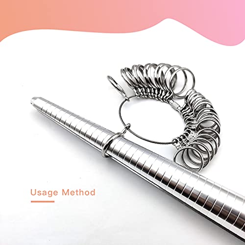 【Cosa otterrai】 Riceverai un mandrino misuratore per anelli, un misuratore per anelli in metallo e 2 misuratori per anelli in plastica, sufficienti per l'uso quotidiano. Puoi preparare un anello a sorpresa per toccarla con il nostro strumento di misurazione dell'anello.
