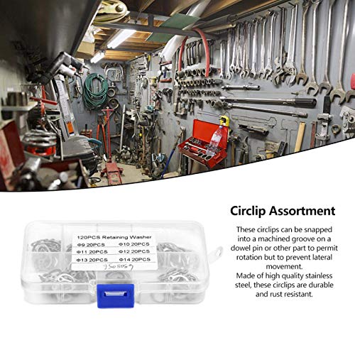 9mm - 14mm 6 misure C-clip, 120 pezzi Set assortimento di anelli di sicurezza per anelli di sicurezza in acciaio inossidabile con scatola