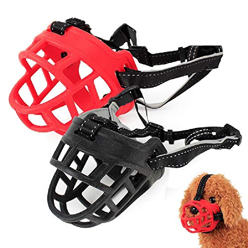 4 misure museruola in silicone per cani canestro regolabile cinghie morbide museruola anti-morso per animali domestici in gomma per cani di taglia media P rosso / nero