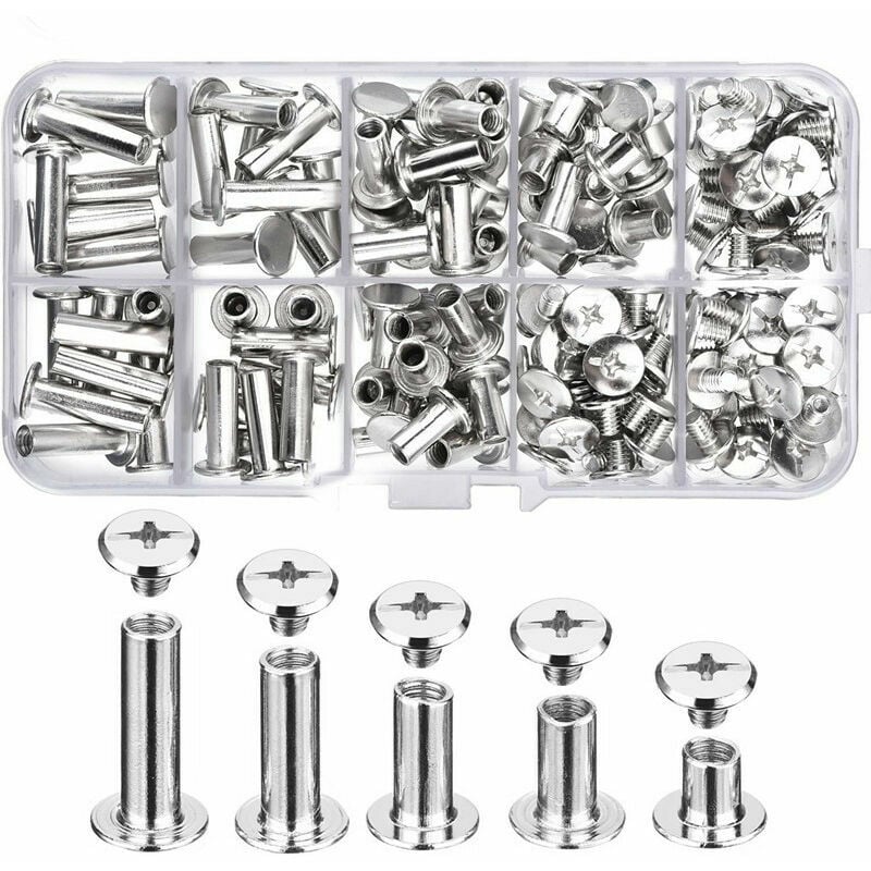 5 diverse dimensioni per il tuo interesse: le viti di rilegatura sono 5 lunghezze: 6 mm, 10 mm, 12 mm, 15 mm e 18 mm, tutte le viti di rilegatura Chicago hanno un diametro di 5 mm che si adatta alla maggior parte degli articoli Alta qualità: il Le viti Chicago sono realizzate in acciaio al carbonio di qualità, placcate con nichel argento, robuste e antiruggine, facili da incollare, installare e rimuovere, questi dadi Chicago possono essere utilizzati ripetutamente con una buona tenuta Ampia applicazione: i rivetti a vite sono particolarmente adatti per decorazioni artigianali in pelle, rilegatura di libri, documenti, libri, album, artigianato fai-da-te, ecc. Facile da installare: basta usare un trapano per praticare un foro di 5 mm di diametro e installare i 2 pezzi su ciascun lato Conservazione conveniente: offriamo bellissime scatole di plastica. Quindi non devi preoccuparti di perdere alcune viti del rivetto, quindi puoi usarle di nuovo Le viti di rilegatura in metallo da 80 pezzi
