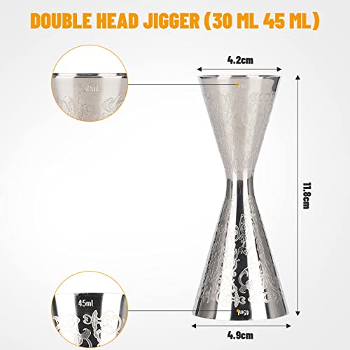 Misurino cocktail,Dosatore cocktail, jigger per cocktail in acciaio inossidabile da 30 ml 45 ml per Bartending,Jigger per Misurazione da Cocktail per bar da casa, barista, party drink