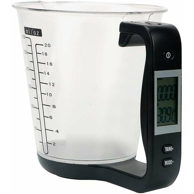 La tazza è adatta per misurare latte, zucchero, olio, farina, ecc. In caso di domande, non esitare a inviarci un'e-mail e ti risponderemo entro 24 ore. Caratteristiche Misuratore digitale -Colore nero. -Materiale: Policarbonato, resina ABS. -Dimensioni: 5,11 x 4,92 x 4,72 pollici. Display a bassa tensione: LOW Display in sovrappeso: ERR Capacità del liquido: 100 ml, 200 ml, 300 ml, 400 ml, 500 ml, 600 ml Alimentato dalla batteria a bottone Funzione pulsante: on/off: premere il pulsante per circa 2 secondi per spegnere l'alimentazione. Tara: funzione tara Modalità: Conversione unità. Premi il pulsante per cambiare unità-g-ml-oz-cup-ct-lb (1000g=35oz) La confezione