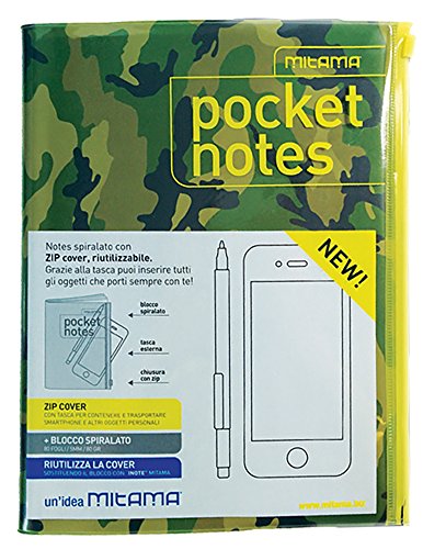 MITAMA 62340- BLOCCO NOTES con SPIRALE E COVER PORTAOGGETTI RIUTILIZZABILE (10,5x14,8 cm) POCKET NOTES, colori assortiti