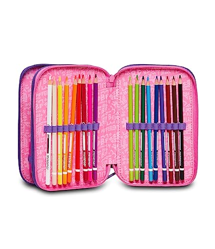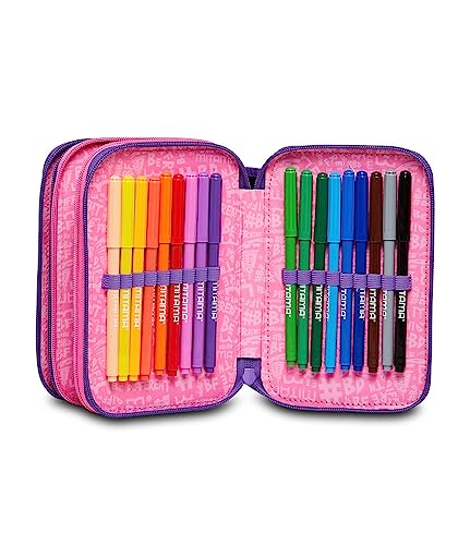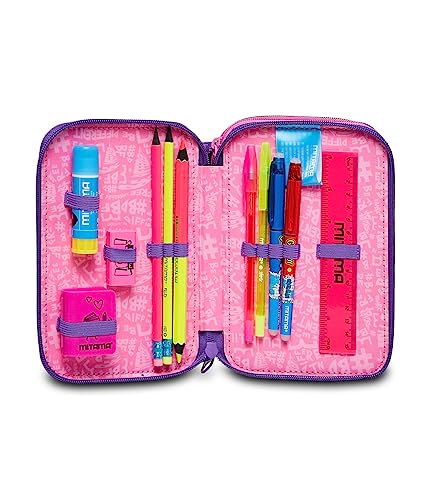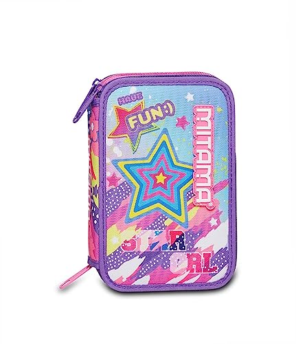 MITAMA Astuccio Scuola 3 Scomparti - TRIPLO STAR & FUN, Multicolore - Contenuto 47 pz - Completo di Matite, Pennarelli etc - Portapenne Scuola Elementare Bambini - Impermeabile