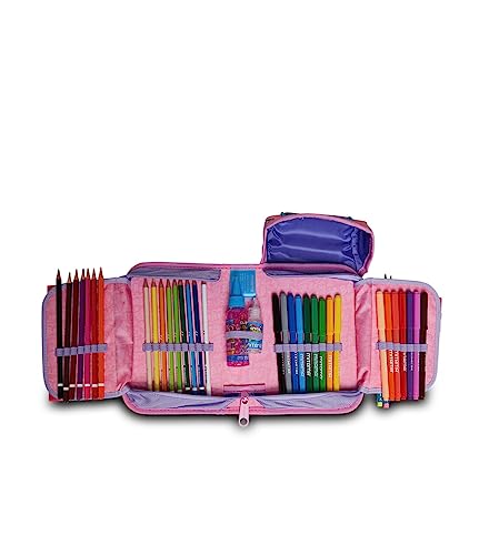 MITAMA Astuccio Scuola 1 Zip - UPSIDE JUST SHINE, Viola - Contenuto 43 pz - Completo di Matite, Pennarelli etc - Portapenne Scuola Elementare Bambini - SLIME in Omaggio!