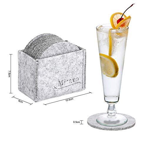 Mitavo - Set da 10 sottobicchieri in Feltro Rotondi, con Scatola, sottobicchieri in Vetro, Bevande, Bicchieri, Tazze, Colore:Grigio Chiaro
