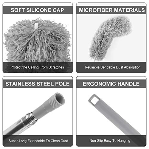 Mitening Spolverino per Polvere, Piumino per la Ragnatela Elettrostatico Spolverino in Microfibra Estensibile con Asta Telescopica Allungabile 40-257cm per Uffici Tetti Interni Ventilatori a Soffitto