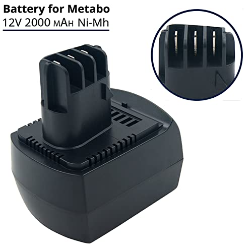 Mitsuru 2000 mAh Ni-MH 12V Batteria per Metabo Compatibile con BZ Serie BSZ12 Impuls BZ 12 SP Metabo Air-Cooled 6.25473 6.25473.00 6.25474 625473 62547300 625474