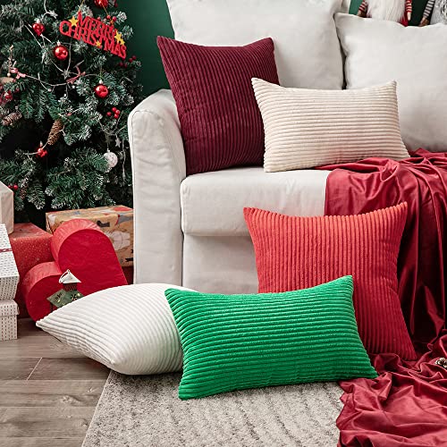 MIULEE Confezione da 2 Fodere Cuscini Natalizio in Velluto a Coste Decorative Federe Morbido Copricuscini Cuscino Moderne Comodo Robusto per Camera da Divano Letto 30 * 50cm Bianco Latte