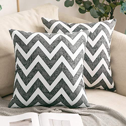 MIULEE Confezione da 2 Set Geometriche Fodere per Cuscini Scamosciate Federe Stampate Copricuscini Decorativo per Divano Camera da Letto Casa 45x45 cm Onda Grigio Scuro