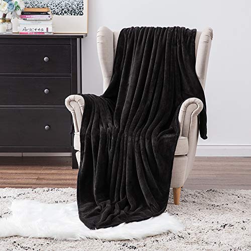MIULEE Coperta Pile in Velluto Flanella Morbida Calda Soffice Decorativa per Coperta Plaid Divano e Singolo e Matrimoniale Letto Decorazioni Casa Poltrona 1 Pezzo 150x200 CM Nero