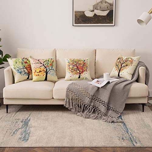 MIULEE Copricuscini Divano Camera da Letto Federe Decorativi Arredo Fodere Casa Stampato Moderni Elegante Resistente in Poliestere con la Cerniera Invisibile 4 Pezzi 45X45 CM Albero Colorato