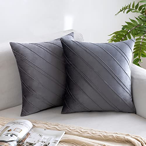 MIULEE Copricuscini Divano Velluto gessato Camera da Letto Resistente in Velluto Cuscini Arredo Fodere Arredamento Casa 2 Pezzi 45X45CM Grigio Chiaro