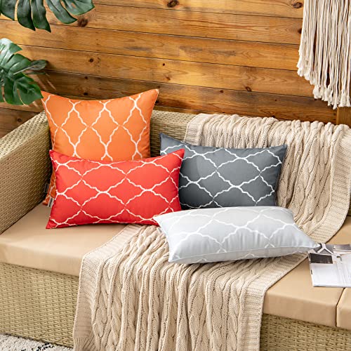 MIULEE Copricuscini Impermeabili all'Aperto Federe Cuscini per Divano all'Esterno per Giardino Federa Rettangolare Moderna Lineata in Stili Marocchino Decorativa Fodere 2 Pezzi 30X50 CM Arancione