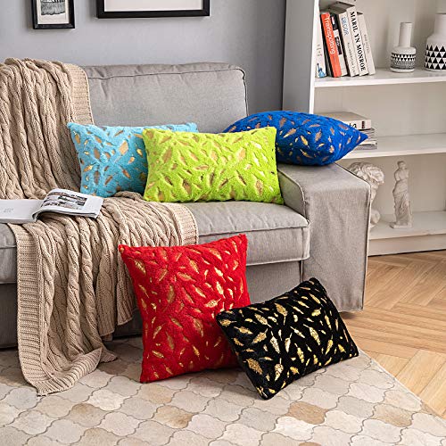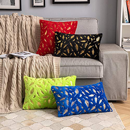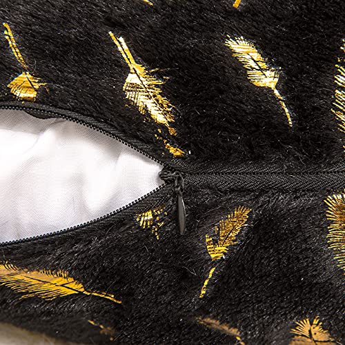 MIULEE Federe Cuscini Divano in Pelo 30x50 Copricuscini Arredo Decorativi e Accessori Rettangolari Nero per Divani Moderni Letto Matrimoniale Motivo Piuma D'oro Confezione da 2