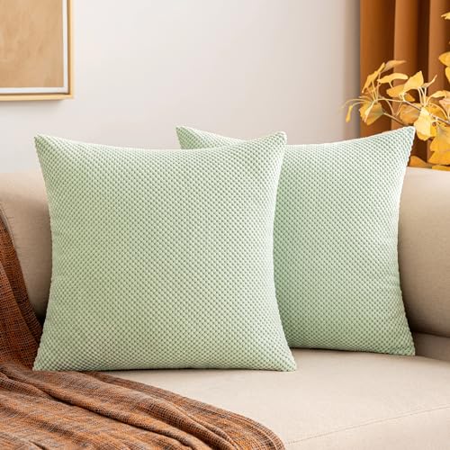 MIULEE Federe Cuscini per Divano Granulari Piccole per Cuscini Fodere Copricuscini Decorativi Morbidi Quadrati per Divano Lettoin Misto Poliestere Federa Casa 2 Pezzi Verde Chiaro 45x45cm