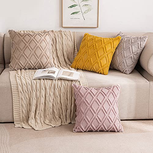 MIULEE 2 Pezzi Cuscini per Divano Federe Moderne per Camera da Letto Divano Decorativo Lana Quadrato Elegante Lavabile Casa 50x50 cm Cachi