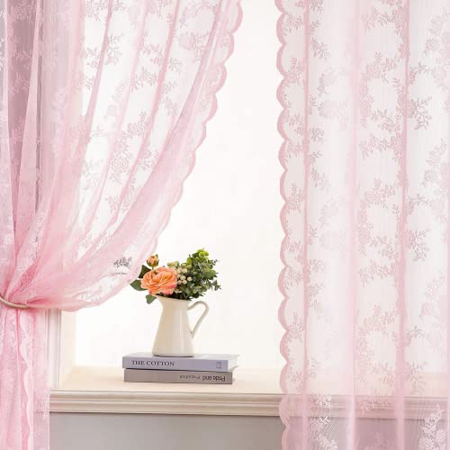 MIULEE Tende di Pizzo-Tende per Finestre in Pizzo Trasparente Ricamate Floreali per Camera da Letto Soggiorno, Tende Ricamate Rosa con Occhielli, 2 Pezzi Tenda di Pizzo, 2 X150x245cm(LxA)