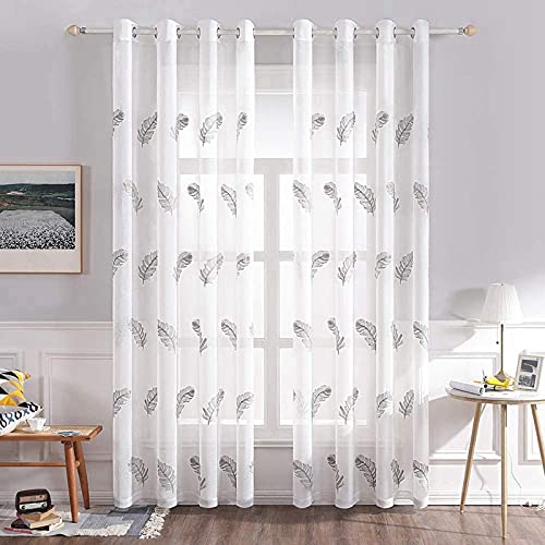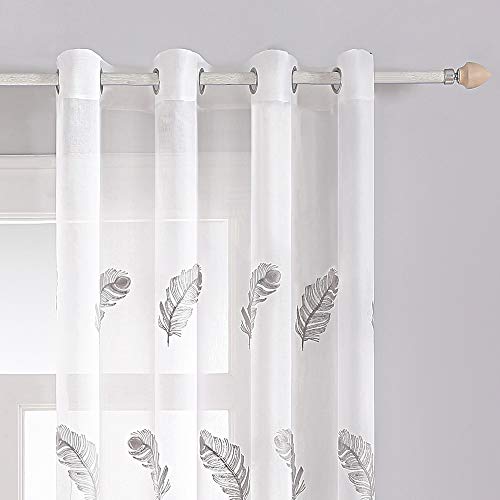 MIULEE Tende Voile Camera da Letto 2 Pezzi Set per Finestra con Occhielli Tende Trasparenti Interni per Soggiorno e Camera da Letto 2 Pannelli 140 X 245 CM Piume Grigio