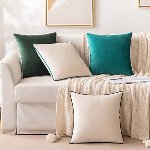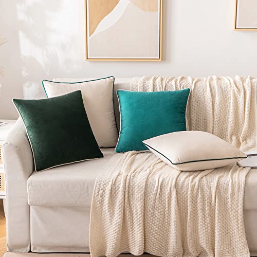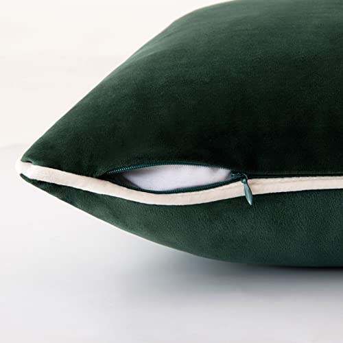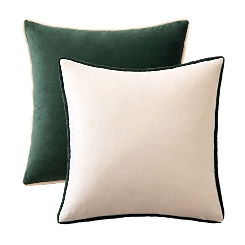 MIULEE Velluto Federe Cuscini di Natale Divano Copricuscini Decorativi Moderno Morbido Resistente per Soggiorno Camera da Letto con Cerniera Invisibile 45X45 cm 2 Pezzi Bianco e Verde Scuro