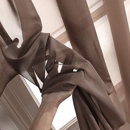 MIULEE Voile Tenda in Chiffon Finestra con Occhielli Tende Morbide Trasparenti per Soggiorno e Camera da Letto 2 Pannelli 140 x 225 CM Marrone Chiaro