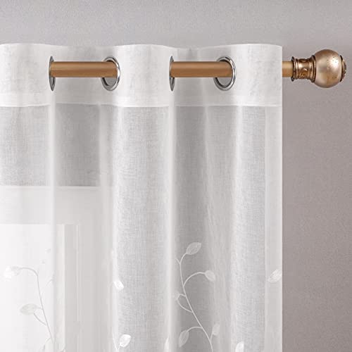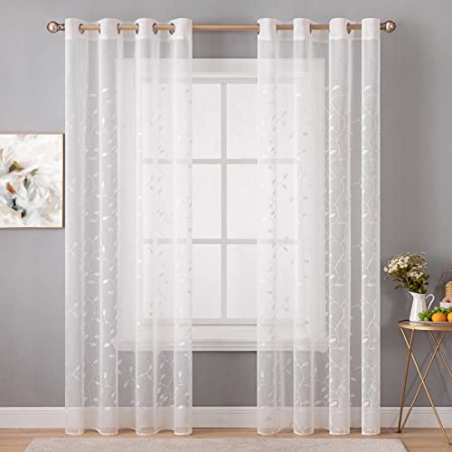MIULEE Voile Tenda Finestra con Occhielli Tenda a Pannello Tende a Vela Trasparente per Soggiorno e Camera da Letto 2 Pezzo Set 140X175 cm Foglie Bianco