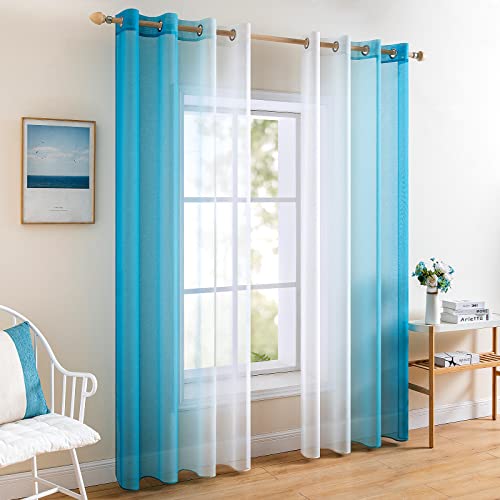 MIULEE Voile Tende Trasparenti con 2 Pannelli per Salotto Eleganti con Occhielli Sfumato Tenda per Finestra Decorazione Balcone e Camera da Letto Soggiorno Bagno Cucina 140X145CM Blu Marino