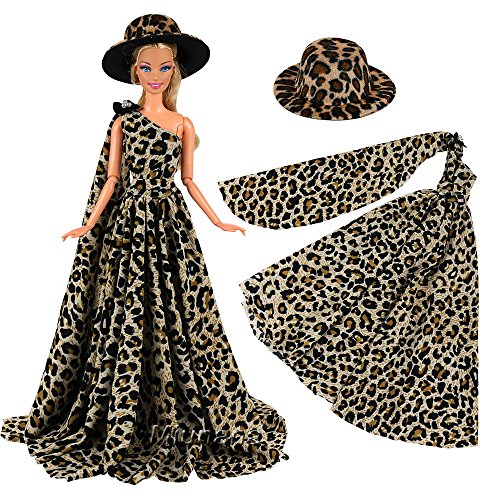 Miunana Abito con Spalla Unica Stile Leopardo con Cappello per Bambola Barbie Dolls