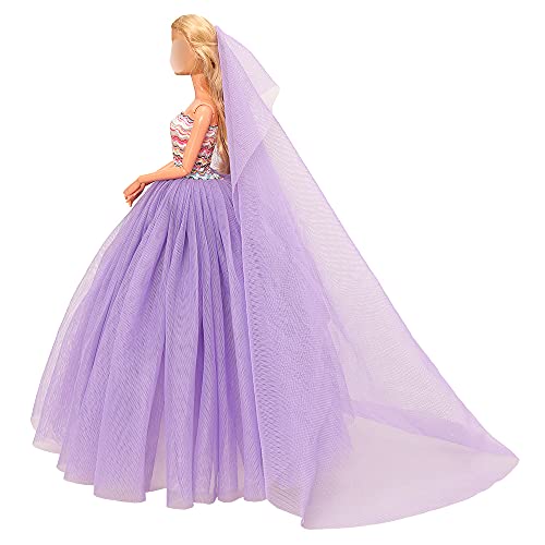 Miunana Abito da Sposa di Viola con Velo Senza Spallini per 11.5inch / 28 - 30cm Bambole