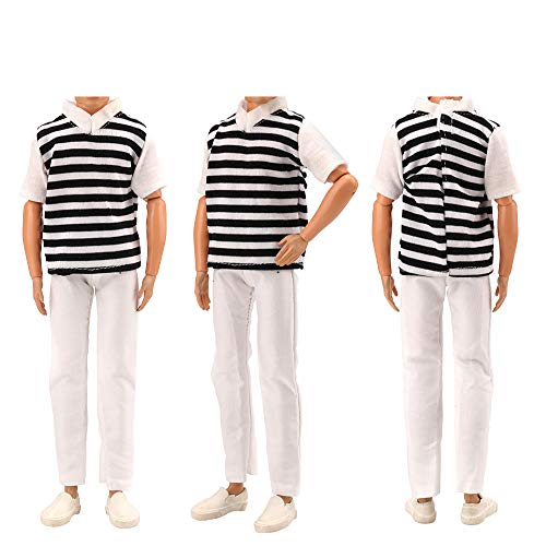Miunana 3 PCS Clothes Abiti Camicie a Strisce e scacchiere e 3 PCS Pantaloni (Nero Bianco+Rosso Bianco+scacchiere) per 30 cm 11.5 Pollici Bambola Ragazzo