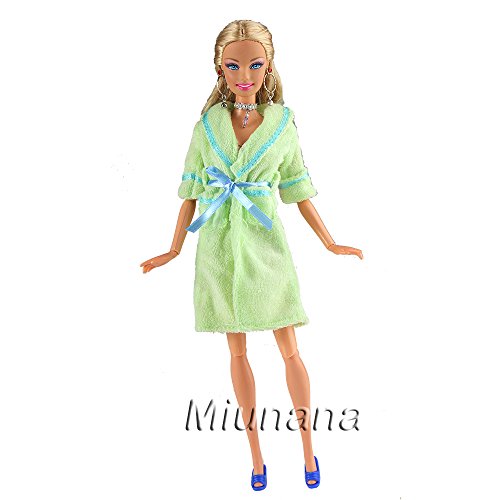 Miunana Pigiama Indumenti da Notte Accappatoio Collo V con Cintura per Bambola Barbie Dolls - Verde