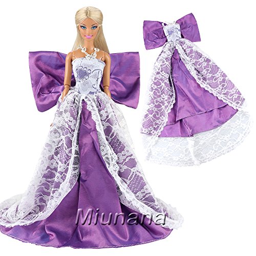 Miunana 3 PCS Vestiti Per Bambola Barbie: Abito Lungo Nero E Bianco Con Pizzo + Abito Di Rosa Con Farfalla Indietro + Abito Violetto Con Farfalla