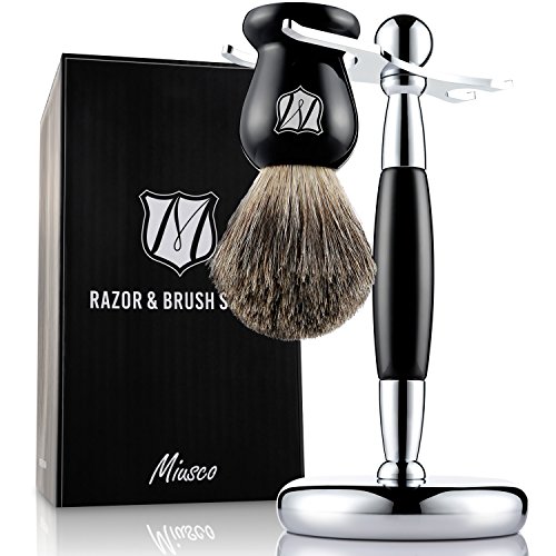 Miusco Pure Badger Hair Shaving Brush and Luxury Stand Shaving Set, Black