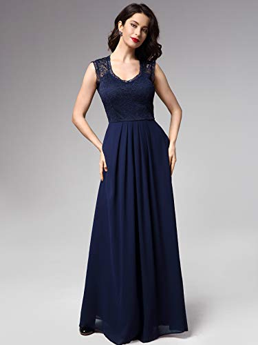 Miusol - Abito da sera lungo, da donna, in chiffon, con scollo a V a-blu Medium