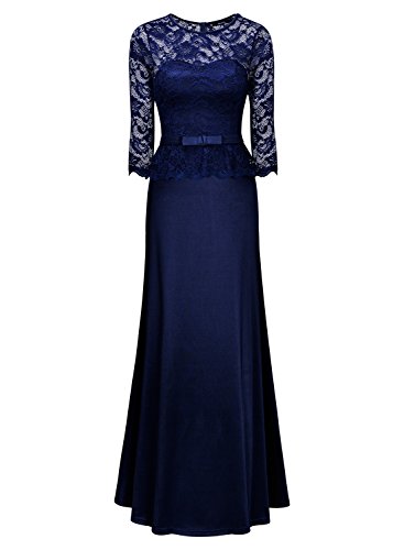 Miusol Lunghe Vestiti Pizzo Donna Elegante Slim Tessuto Liscio Vesito da Sera