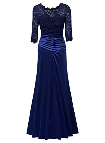 MIUSOL Pizzo Vestito Lungi Donna Vintage Slim Lungo Abito Da Sera Blu X-Large