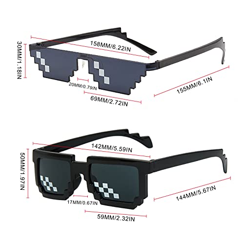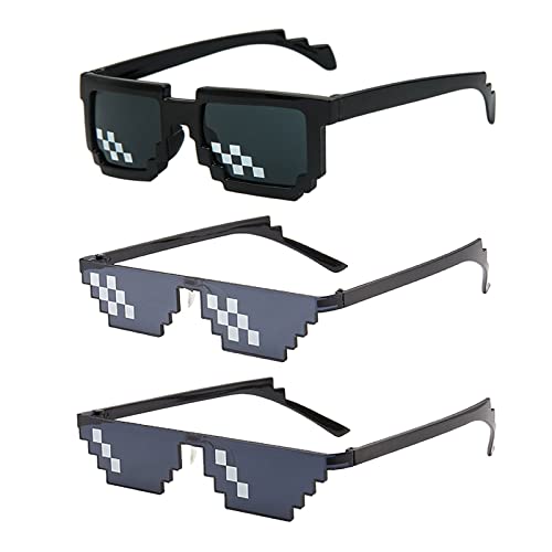 MIVAIUN 3 Paia Occhiali da Sole Pixel Occhiali da Sole in Plastica Accessori per Feste Giocattoli per Bambini Occhiali Mosaico Occhiali Divertenti per Servizio Fotografico Festa Compleanno (Nero)